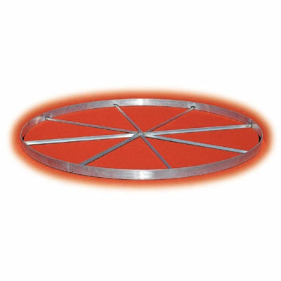 This discus ring is manufactured in two half circles and uses 1/4″ x 3″ strip with welded cross braces for added rigidity and ease of installation. Two half circles are bolted together before installation ensuring circle stays round.