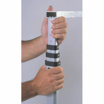 This measuring device is a must for any track meet. Easy to read feet and inch marks printed on both sides of the pole, This device is easy for anyone to use. Snap Lock buttons lock sections in place yet collapses.